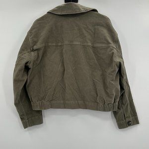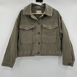 Everlane The Moleskin Utility Olive Green Distressed Cropped Jacket