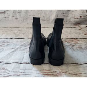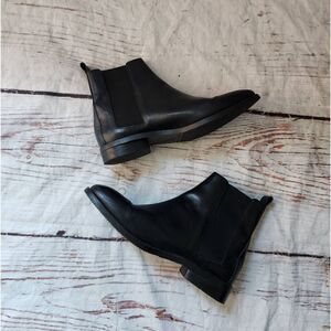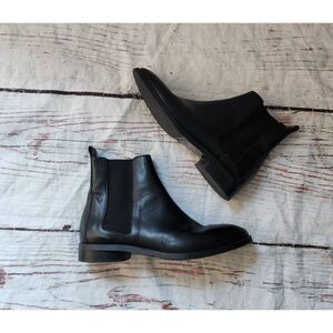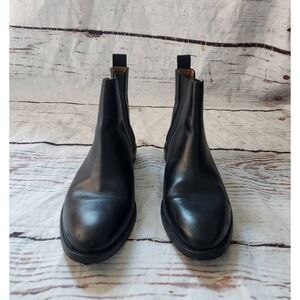 Black leather pull on boots with elastic panels on each side. In great condition.