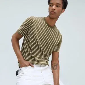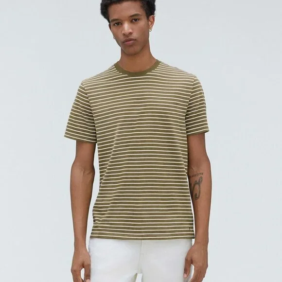 Everlane The Organic Cotton Crew | Uniform Olive Stripe M