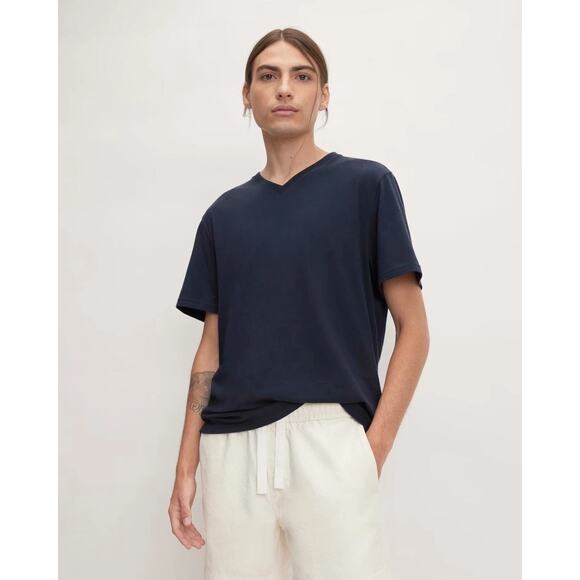 Everlane The Organic Cotton V Neck Tee Mens Medium Navy Blue Minimalist NEW