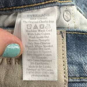 Light wash, The Original Cheeky Jean, 5 pocket design, 98% Organic Cotton, 2% Elastene, Cropped, Straight. Measurements taken laying flat: