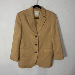 Our best-selling blazer reworked in a TENCEL™ Lyocell and cotton blend. Our Oversized Blazer has a roomy, menswear-inspired shape and modern look—complete with cuff buttons and flap pockets that add the perfect amount of polish. While the overall fit is oversized, it's cut closer in the arms. Consider sizing up. Complete the look with The Way-High Drape Pant or over denim for a polished, casual look.