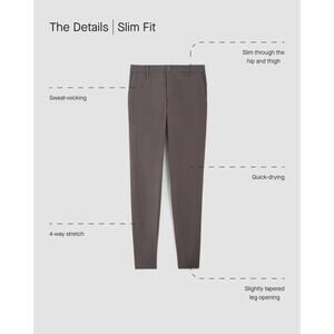 So we made a pair with all the technical-pant features—they’re sweat-wicking, quick-drying, and have 4-way stretch—plus an authentic chino look designed for everyday wear. Slim fit features a slim fit through the hip and thigh, slightly tapered leg, and regular rise.