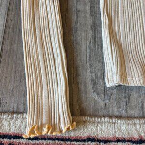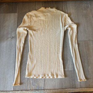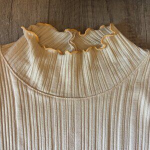 Everlane The Pleated Turtleneck Long Sleeve Ribbed Shirt in Parchment Small
