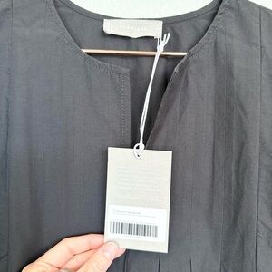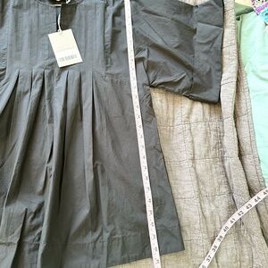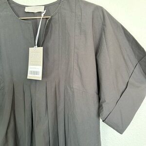 - Features a crew neck with front opening, front pleats, and easy Kimono sleeves.