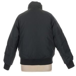Everlane ReNew Puffer Bomber Jacket in Black, Size XL. Features include a two‑way center zip, snap‑secure on‑seam pockets, and recycled‑down insulation—combining warmth, sustainability, and sleek design.