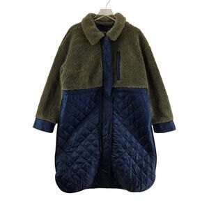 Everlane The Quilted Teddy Coat Womens XL Navy Blue Kalamata Green Mid Length