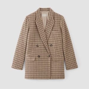 Everlane The ReWool Double Breasted Blazer Beige Houndstooth Size 4 NEW