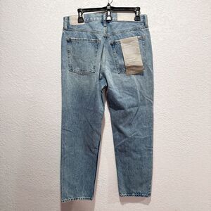 The Everlane The Relaxed Straight Jean in Organic Cotton is a versatile and sustainable choice for women. This light blue denim pair features a relaxed fit with a button closure, making it comfortable for all-day wear. The high-rise waist and straight leg give a classic look, while the 27 regular size and 30-inch waist ensure a great fit. Easy to care for with machine washable instructions, these jeans are perfect for any season and can be styled for various occasions.