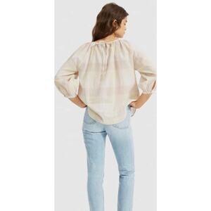 Everlane The Ruched Air Blouse in Toffee Plaid Size 6 Lightweight Minimalist