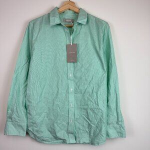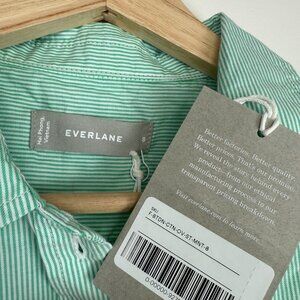 NWT Everlane The Silky Cotton Relaxed Button Down Shirt Striped Jade Green White 8
