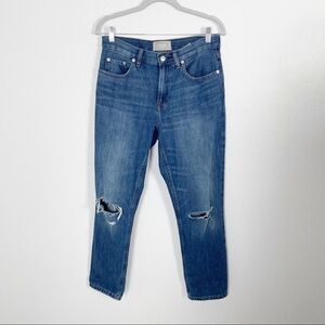 Everlane The Summer Denim Ripped High Rise Straight Leg Cotton Jeans Blue