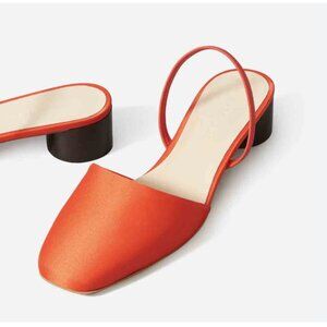 Everlane The Tapered Square Toe Slingback Heel Red Slingback Mules 8 satin
