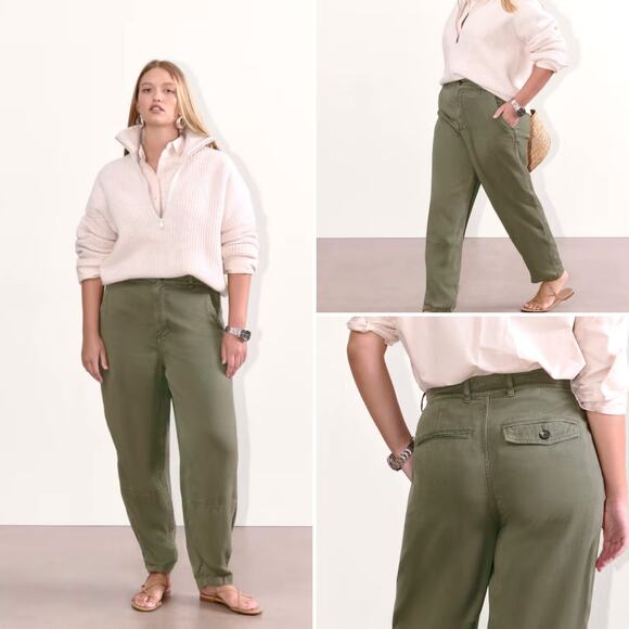 Everlane The Tencel Relaxed Chino Pants Olive Green High Rise Women 6 NWT Pocket