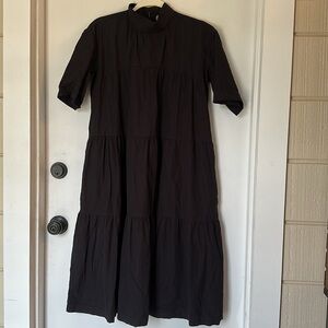 Everlane The Tiered Mock Neck Dress Black Poplin xs