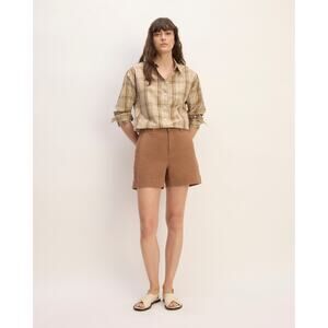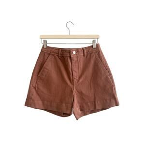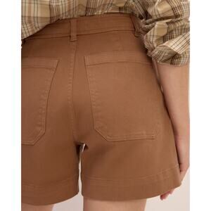 This piece features a high rise, zipper closure, side pockets, and back patch pockets, in a heavyweight organic cotton twill with comfort stretch.