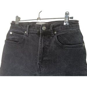 Everlane The Way High Jean Organic Cotton Sz 25 Cropped Black Denim Straight Leg