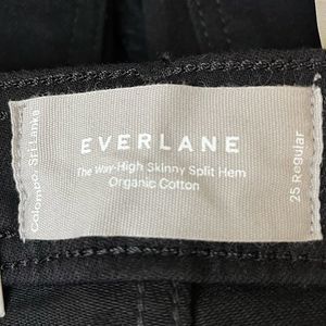 Everlane The Way High Skinny Split Hem Jeans Size 25 Black New with tags, never worn 3 pockets Zipper fly High waisted, high waist Measures approx: Inseam 32.5 inches long Rise 11.75 inches high Waist 12.25 inches across on a flat lay Everlane Preppy, School, scholar, college, collegiate, university, girl next door, GND, comfy, casual, relaxed, cozy, effortless, classic, simple, versatile, preppy, sporty, trendy, urban, edgy, vintage, retro, Taylor Swift, city boy, Lana del Rey Career, office attire, work, professional, polished, mature, sophisticated, business, corporate, careerwear, businesscore, work clothes, dress code, minimalist, classic, back to school, business casual Style Number F-BTM-DNM-MCJ-FLR