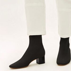 Everlane The Glove Boot Rib Knit Ankle Sock Boots Size 7 ReKnit Black Block Heel
