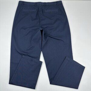 Everlane Uniform men's size 33 pants, they are The Cotton Pleated Chino style, color is deep blue, mid-rise, stretch, lightweight spring/summer fabric, garment dyed, single pleat, slightly tapered straight leg fit, front slash pockets, back welted hidden pockets, extra buttons, belt loops, button and zip closure. Materials 98% organic cotton, 2% elastane. Care machine wash cold tumble dry low. Condition is preloved good with slight fabric flaw near pocket as shown in pictures. Please preview the measurements to ensure fit.