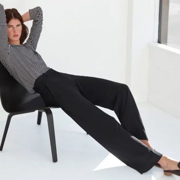 Everlane Wide Leg Pants Triacetate Trousers Full Lenght Black Size 00