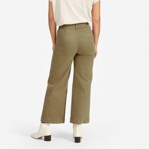 Gently used Everlane wide-leg crop patch pocket pants in olive. Our most flattering pant gets a vintage vibe. We added '70s-inspired front patch pockets to our favorite Wide Leg Crop. These pants have a classic high-rise, leg-lengthening cropped hem, and are garment dyed for an extra soft, broken-in feel. No flaws, only worn a couple of times. Size 0. Please note they have been cut and now have a raw hem.