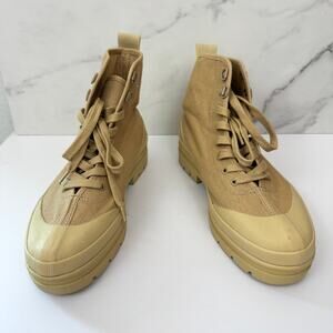 Everlane Women Canvas Utility Lug Boots Size 7.5 100% Organic Cotton Neutral Tan