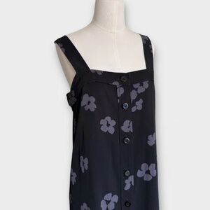 Everlane Women's Apron Dress Black/Gray Flowers Sleeveless Tank