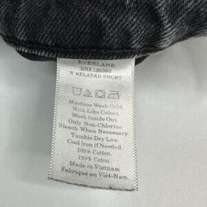 Everlane women's size 25, they are The Relaxed Short style, color is black, mid-rise, 5-pocket design, belt loops, whiskering, medium weight fabric, cut-off by design with button and zip closure. Materials 100% cotton. Care machine wash, lay flat or tumble dry low. Condition is preloved good with slight wash fade as shown in the pictures. Please preview the measurements to ensure fit.