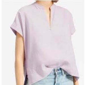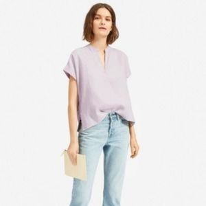 Elegant light purple blouse. Features a relaxed fit. Short sleeves and a v-neckline.