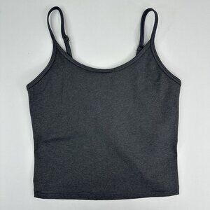 Everlane women's size small tank top, it is The Perform style, color is Gray, crop length, adjustable thin spaghetti straps, thick stretchy fabric, and built in bra. Materials 40% recycled nylon, 40% recycled polyester, 20% elastane. Care machine wash cold gentle cycle and tumble dry low. Condition preloved very good as shown in pictures. Please preview the measurements to ensure fit.