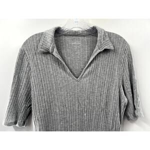 Everlane Womens Gray Solid Stretch Ribbed Short Sleeve V-Neck T-Shirt Size Large