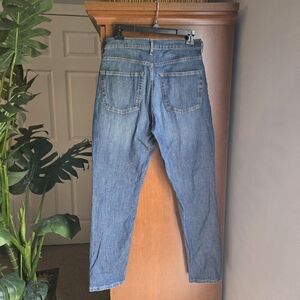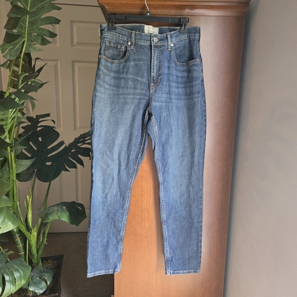 Everlane high rise straight leg size 29 regular blue jeans. excellent condition. seeing no flaws. maybe general wear showing. waist 29", inseam 29", rise 11".