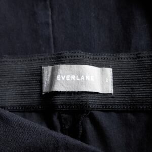 Everlane women’s jogger-style pants in deep black stretch cotton with a clean flat front and side zip closure. Women’s size 2. The tailored jogger cut and structured fabric lend a modern minimalist shape that bridges casual and refined, the essence of Everlane’s artisanal athleisure style.