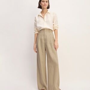 Your favorite pants now come in linen. The Linen Way-High® Drape Pant features pleats for a flattering drape a wide leg and floor-skimming length. Made of 100% linen so they're breathable light and slightly sheer—the perfect alternative to denim for warmer days. Plus they're extra versatile so you can dress them up for weddings or pair them with a tank for a more casual look. Designed with a non-stretch waistband. Try sizing up if you prefer more ease around the waist. Everlane Women's Linen Way-High® Drape Pant in Khaki, Size 0, Denim/Linen