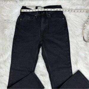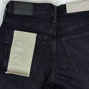 Everlane women's size 26 crop ankle jeans, they are The Original Cheeky style, color is Black, 5-pocket design, hi-rise, curvy straight leg, low stretch, belt loops, button and zip closure. Materials 98% organic cotton, 2% elastane. Care machine wash cold tumble dry low. Condition is new with tags as shown in pictures. Please preview the measurements to ensure fit.