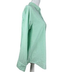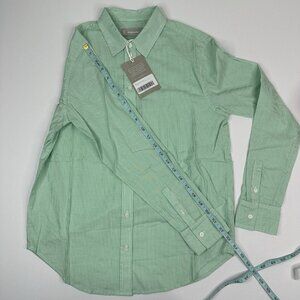 Everlane women's size 0 shirt, it is The Silky Cotton Relaxed style, beautiful mint green with white pinstripe, traditional twill cotton weave, relaxed fit, long sleeves, point collar, button cuffs, button front closure, soft fabric, baseball hem. Materials 100% cotton. Care machine wash cold tumble dry low. Condition is new with tags as shown in pictures. Please preview the measurements to ensure fit.