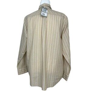 Everlane women's size 16, it is The Silky Cotton Relaxed shirt, color is Tan and White striped print, it is a button down, notch collared, long sleeves, oversized relaxed, boxy, lightweight and soft. Materials 100% cotton. Care machine wash cold tumble dry low. Condition is new with tags as shown in pictures. Please preview the measurements to ensure fit.