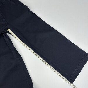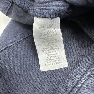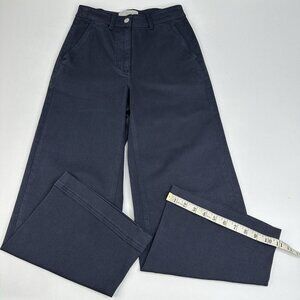 Everlane women's size 2, they are The Wide-Leg Pant style, color is navy blue, flattering ankle length, high-rise waist, front slash pockets, large back patch pockets, thick fabric, stretchy, belt loops, single button and zip closure. Materials 97% cotton, 3% elastane. Care machine wash cold lay flat to dry to preserve fabric. Condition is preloved very good as shown in pictures. Please preview measurements to ensure fit.
