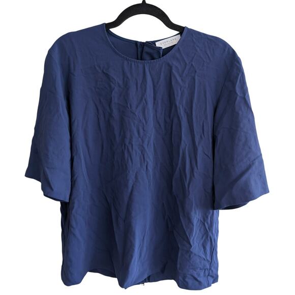 Everlane Women's Round Neck 3/4 Sleeve Top Blouse Back Zip Blue Size 8