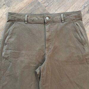EUC no flaws noted. 98% organic cotton. Super wide leg. Mix of green brown taupe colors depending on lighting.