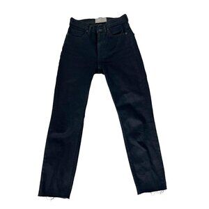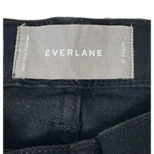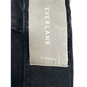 Everlane women's black denim straight leg jeans with raw cropped hems. Jeans are made of a cotton spandex blend and are a woman's size 25.