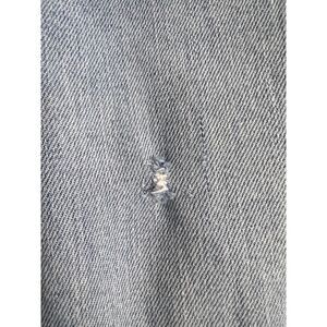 There is a hole on the left front leg and a couple of light stains on the front right knee area (see photos).  Otherwise, in good pre-owned condition.