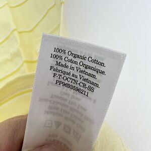 Elevate your casual wardrobe with this beautiful yellow striped short sleeve T-shirt from Everlane. Crafted from 100% cotton knit fabric, this lightweight and breathable T-shirt features a collarless crew neckline and pullover closure, making it perfect for travel and casual occasions. The slimming and stretchy fit, easy care, and all-season design of this T-shirt make it a must-have in your closet. The T-shirt is brand new with tags, making it a great addition to your wardrobe. It comes in L size, which fits regular size women. The T-shirt has a colorful, bohemian, classic, retro, preppy, hipster, designer, beach, city, Florida, school, and college theme, which makes it perfect for any occasion. Get ready to turn heads with this Everlane T-shirt!