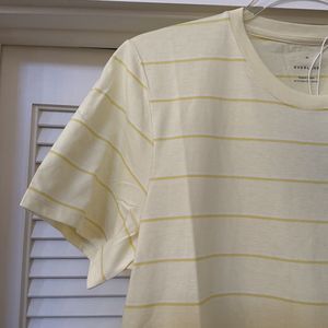 Everlane Yellow Striped The Cotton Crew Neck T Shirt, Size XL NWT