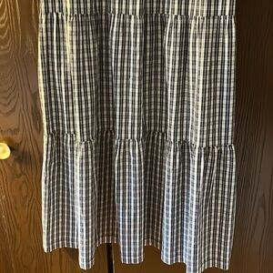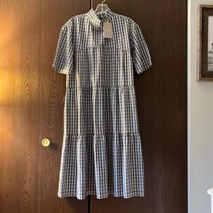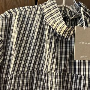 Everlane navy/ light blue checked, ruffled, maxi dress. Size Small. NWT