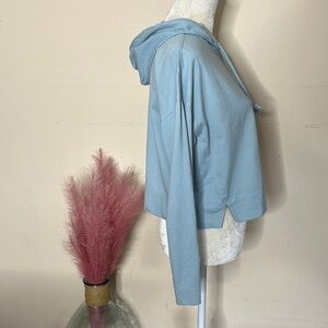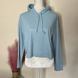 Lightweight, cropped, boxy with a beautiful blue color! Organic cotton