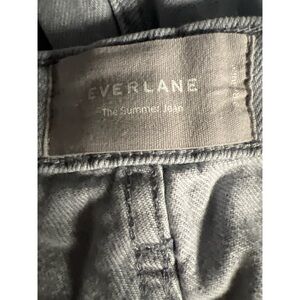 These Everlane jeans feature a sleek straight-leg cut in a versatile gray hue, offering a contemporary and minimalist look. Crafted from standard weight denim, they provide a comfortable fit suitable for various occasions. The clean, uniform appearance makes them a stylish addition to any wardrobe.