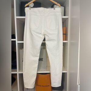 A classic Summer white denim. Waist 18”, rise 11, inseam 30. Questions? Leave a comment below!