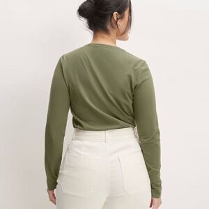 Everlane The Organic Cotton Long-Sleeve Crew Kalamata Olive New With Tags Size S